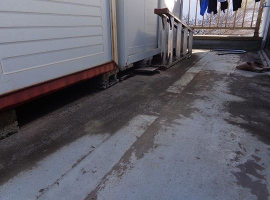 屋上をウレタン防水で改修します。 高圧洗浄して乾いてからプライマーを塗っています。